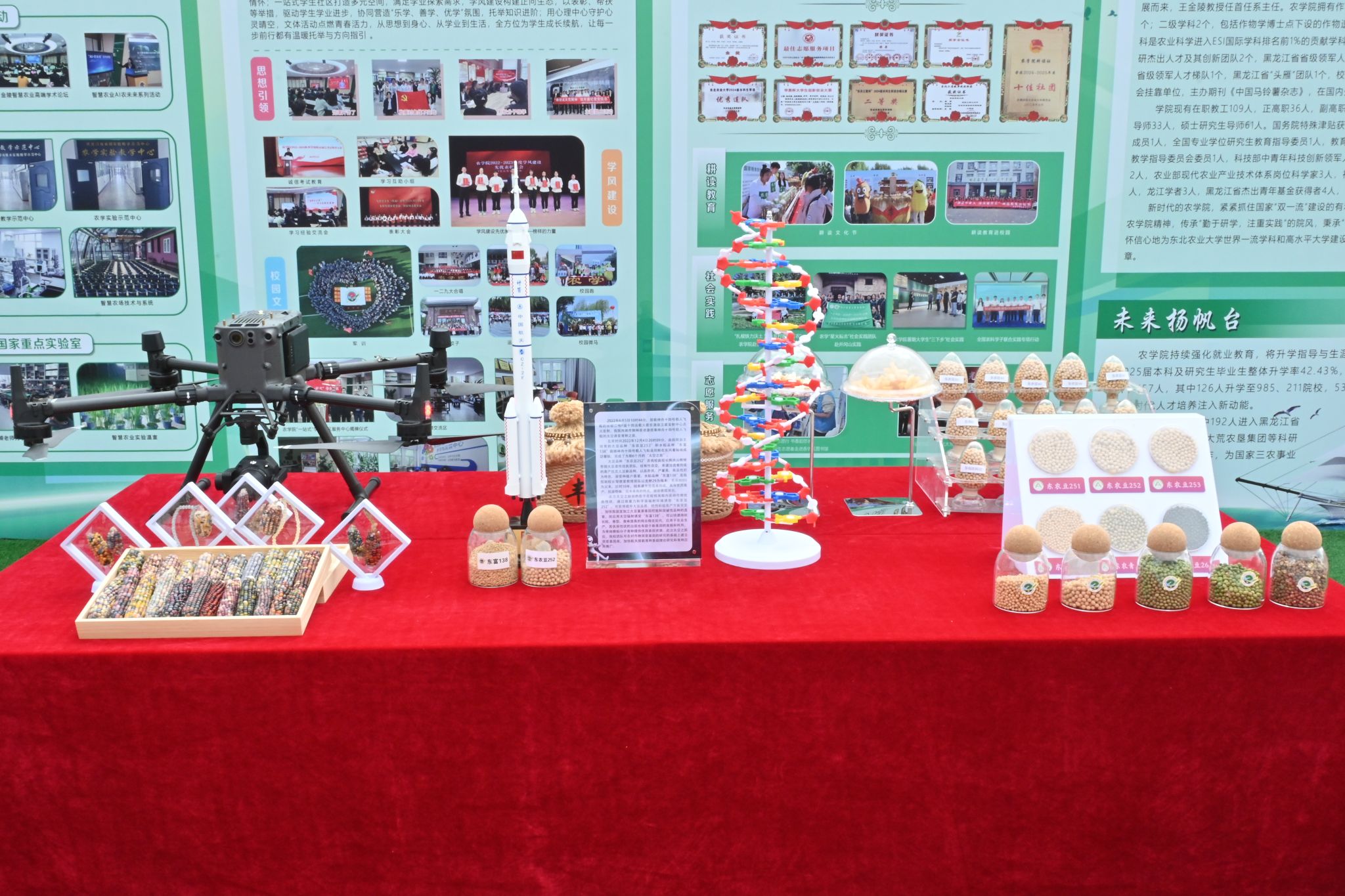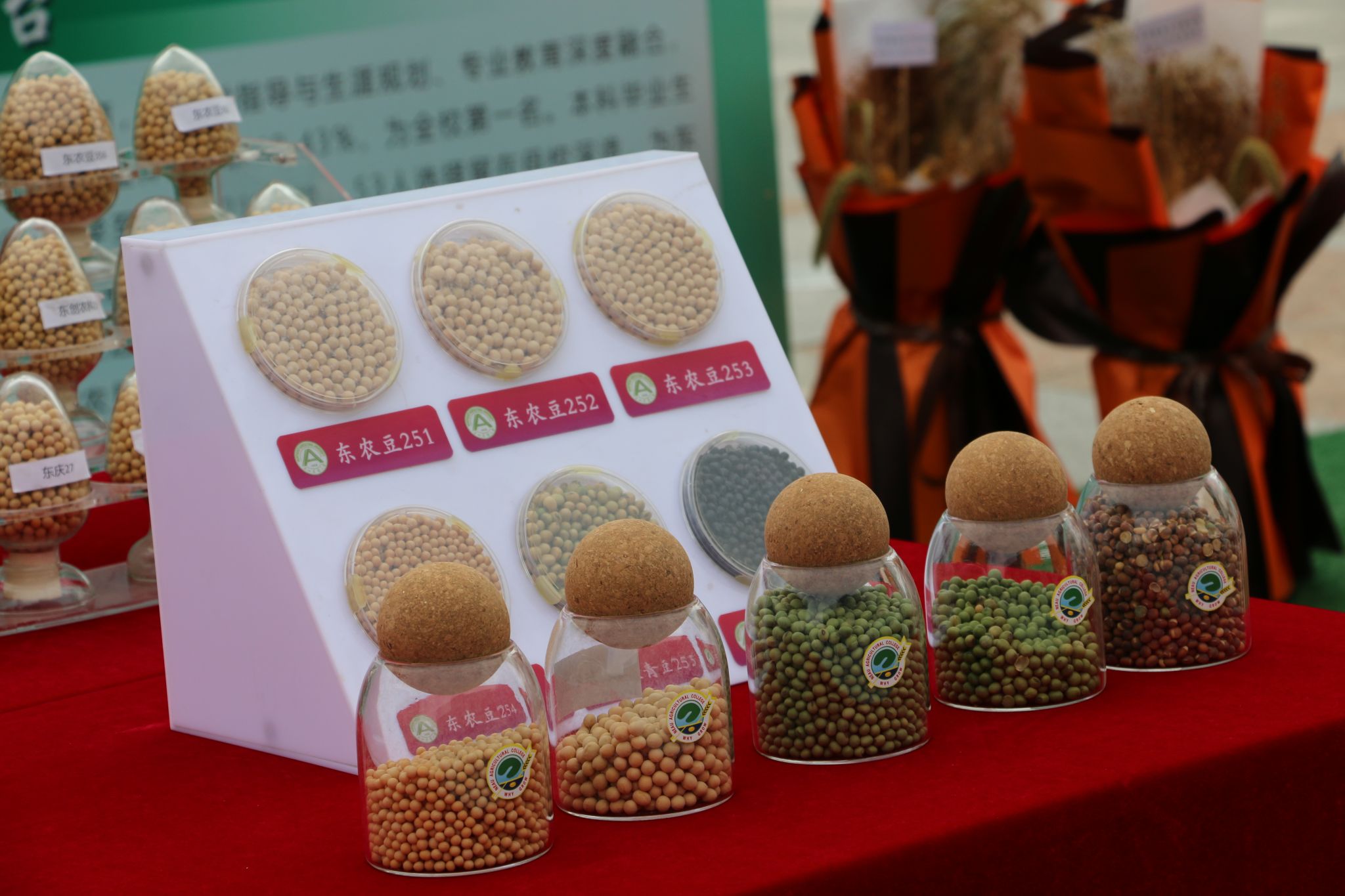 迎新展台摆放着VICTOR1946各种各样的科研成果、培育的新品种作物以及研发的特色美食。在正中央,整齐排列着一盒盒封装精致的种子展品——这些都是学院科研团队历经数年培育的优良品种,饱满圆润的种子让新生们直观感受农学的魅力与希望。