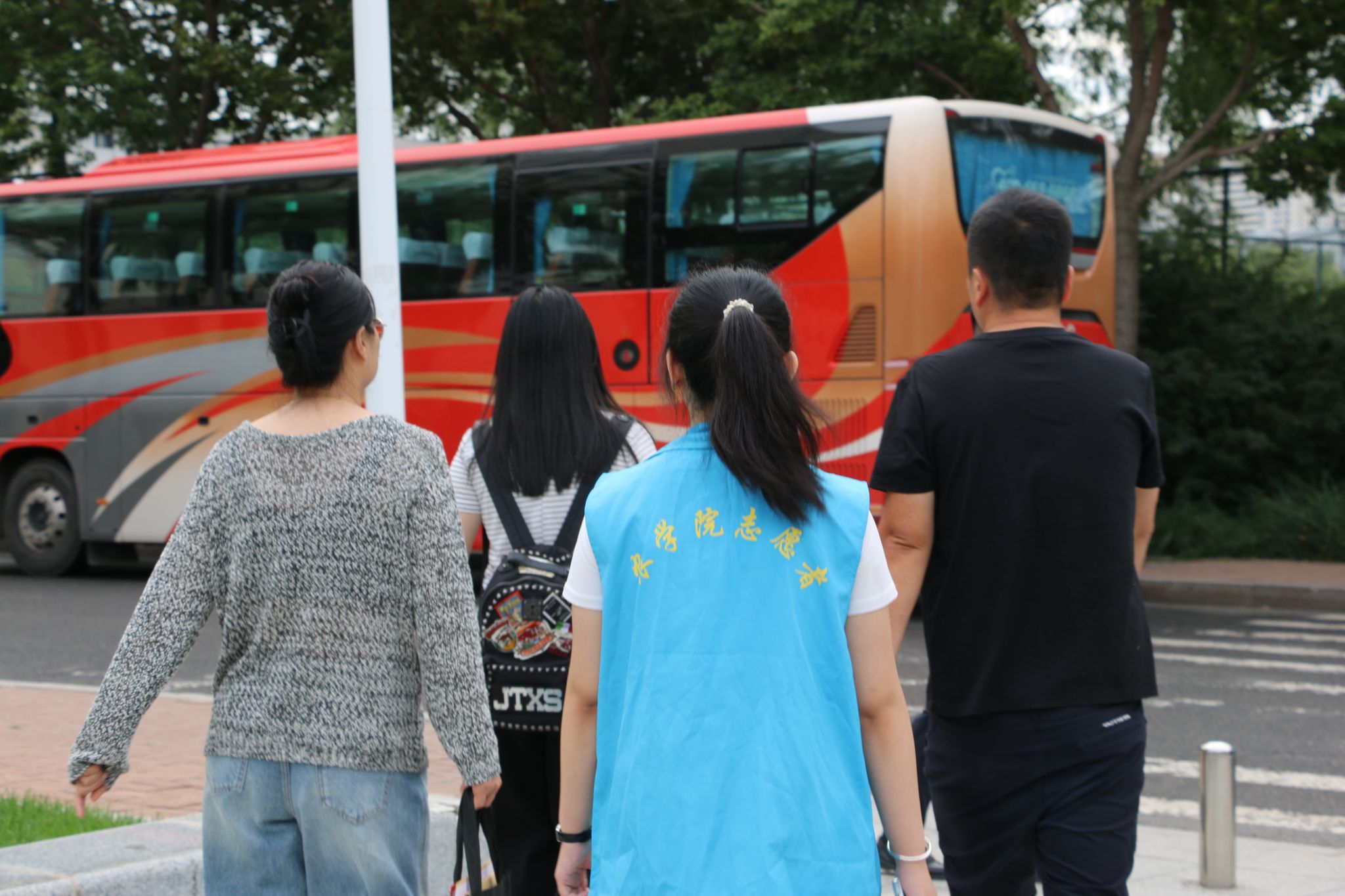 由学长学姐组成的志愿者团队带领新同学和家长一同前往寝室,一路上向新同学介绍学校的各个区域,分享他们大学生活的经验之道。