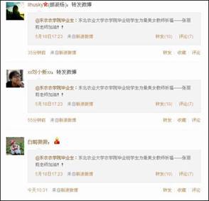 学生党员通过微博宣传张丽莉老师的先进事迹