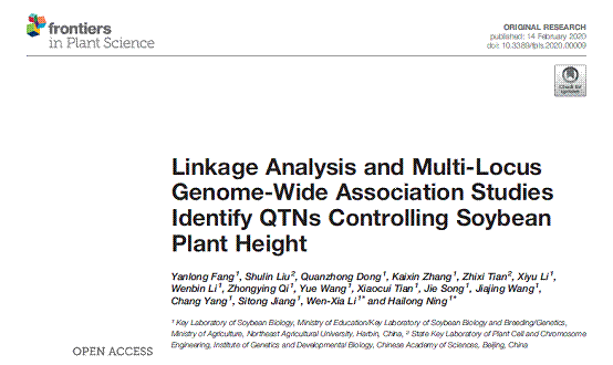(五)宁海龙研究团队在解析大豆株高的遗传机制中取得新进展