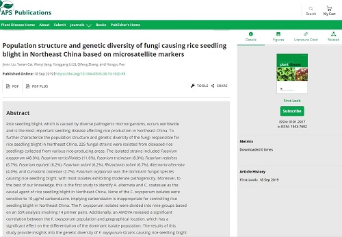 近期,国际学术期刊《Plant disease》(中科院一区,IF 3.58)在线发表了伟德国际VICTOR1946李永刚副教授团队的题为“Population structure and genetic diversity of fungi causing rice seedling blight in Northeast China based on microsatellite markers”和“First Report of Fruit Rot of Watermelon Caused by Fusarium equiseti in China”的研究论文二篇。