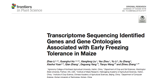 近期,国际学术期刊《Frontiers in Plant Science》(影响因子4.28,二区)在线发表了bevictor伟德国际1946农业部东北地区作物栽培科学观测实验站、玉米非生物逆境生理与调控创新团队的题为“Transcriptome Sequencing Identified Genes and Gene Ontologies Associated with Early Freezing Tolerance in Maize”的研究论文。