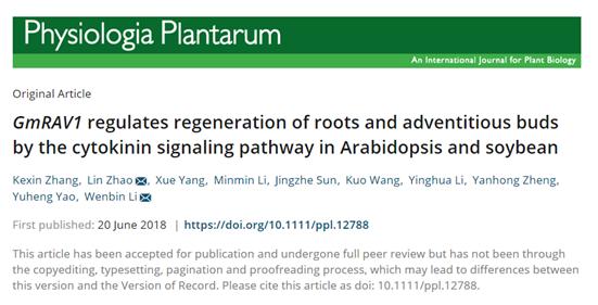近期,国际学术期刊《Physiologia Plantarum》,(2区,IF=2.580)在线发表了bevictor伟德国际1946大豆生物学教育部重点实验室李文滨团队题为(“GmRAV1 regulates regeneration of roots and adventitious buds by the cytokinin signaling pathway in Arabidopsis and soybean”)的研究论文。