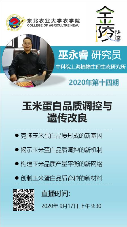 玉米蛋白品质调控与遗传改良内容简介:瞄准玉米种业创新“绿色优质高效”目标,以玉米胚乳发育与遗传改良为研究方向,为培育新型优质蛋白玉米奠定分子遗传基础。玉米是我国第一大作物,70%玉米都用作饲料。作为肉、蛋、奶生产的主要饲料来源,玉米的蛋白品质相当关键。巫老师的报告分析了玉米蛋白品质不理想的主要原因,回顾了高赖氨酸突变体o2的发现、分子机理及育种应用。传统优质蛋白玉米(quality protein maize, QPM)就是以o2粉质突变体为高赖氨酸供体,通过聚合胚乳修饰因子恢复成硬质玉米而育成。但是QPM胚乳修饰机理不清楚、产量不如普通玉米和总蛋白含量偏低等,这些缺点阻碍了其育种发展。巫老师课题组首先克隆了QPM一个主效胚乳修饰因子qγ27,还发现O2不仅调控玉米胚乳醇溶蛋白表达,还调控淀粉合成,从而影响产量。基于这些扎实的前期基础理论研究,他们提出了新型QPM的育种方案,即通过遗传重组聚合自然群体中低19和低22-kD醇溶蛋白材料替代o2作为高赖氨酸供体,从而减少对产量影响;继续克隆新的胚乳修饰因子用于克服低醇溶蛋白带来的粉质表型;克隆野生玉米高蛋白主效QTL,引入QPM玉米提高其蛋白含量。未来这些研究将为我国玉米的蛋白品质改良提供很好的分子基础和实践。