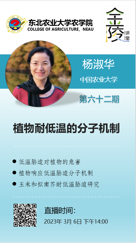 低温胁迫影响植物生长发育、作物的产量和品质。团队长期从事植物响应低温胁迫分子机制研究。报告将讲述该团队在拟南芥和玉米耐低温胁迫方面的研究进展。