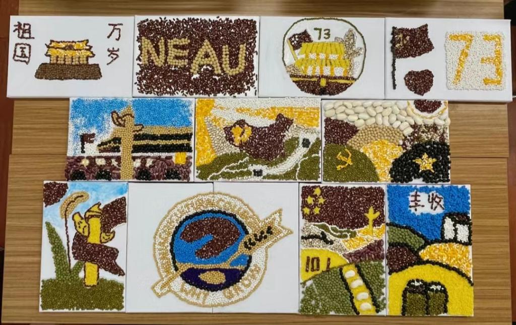 同学们两两组队、默契配合,齐心协力完成了创意作品,以画为礼,祝愿祖国更加繁荣昌盛。有的队伍描绘了中国地图;有的队伍画出了人民英雄纪念碑;有的队伍以天安门为创作点,并在此基础上增加了丰收的麦穗作为点缀。同学们纷纷表示,这次活动不仅了解到了有趣的五谷知识,还开拓了对农业研究的视野,会把学习到的知识转化为学习前进的动力,厚植“三农”情怀,将个人的成长成才融入国家的发展,让自己的大学时光留下无悔的青春印记。