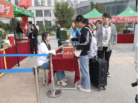 迎新现场精心营造学农、为农氛围。智慧农业表型采集无人机飞行展示、农业物联网教学设备展示和VR虚拟仿真教学系统体验尽显“科技范”,现场演绎硬核科技如何守望“大国粮仓”。东农豆坊豆浆、五谷花束、时光沙漏、麦穗挂画、“新农人”礼包,新同学在报到现场充分“享农趣、观农颜、品农味、悟农韵”,感受农学魅力。