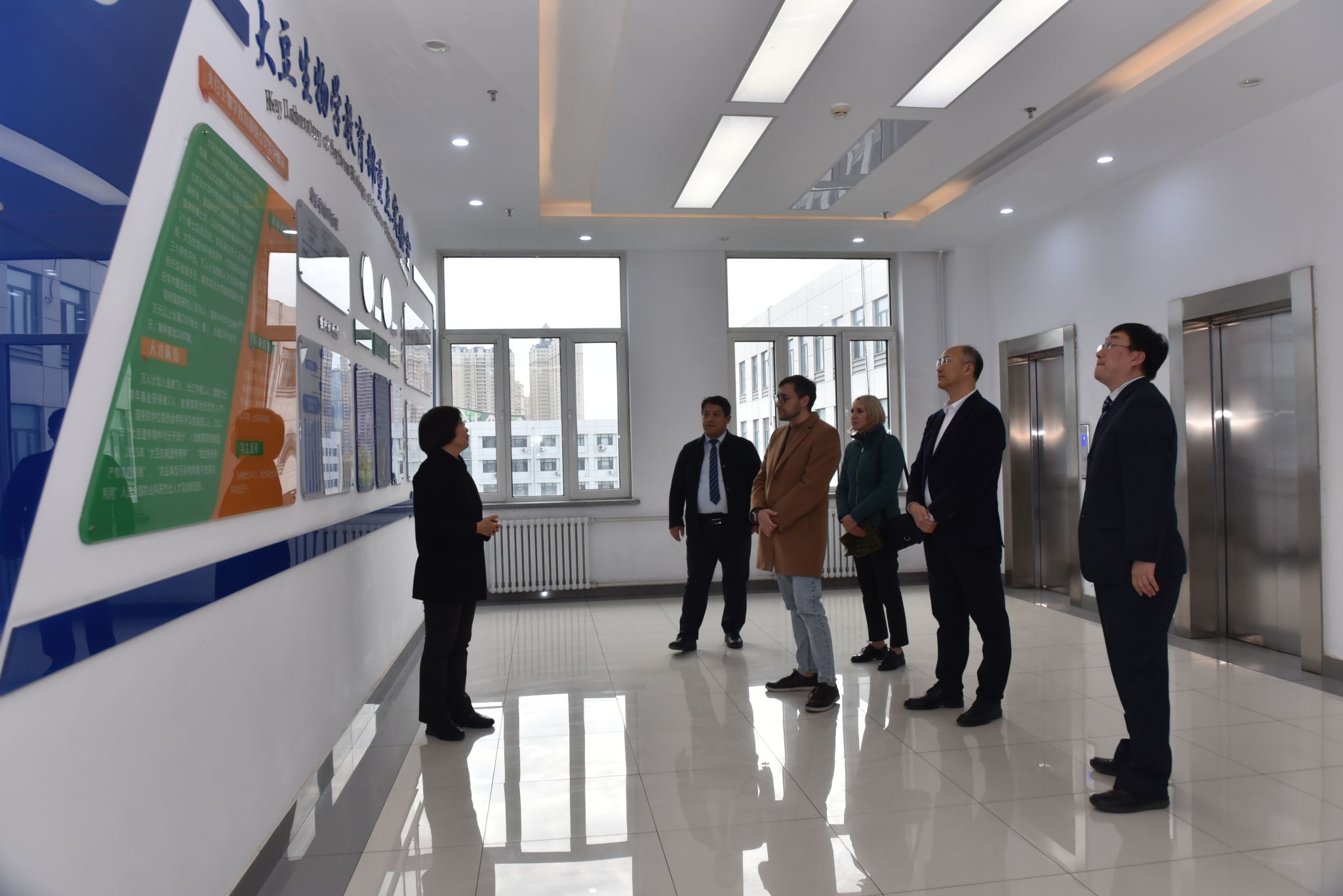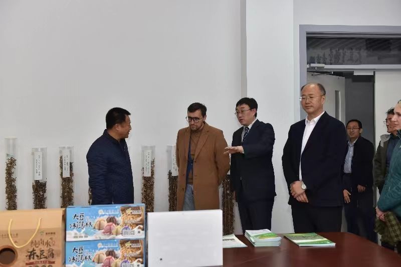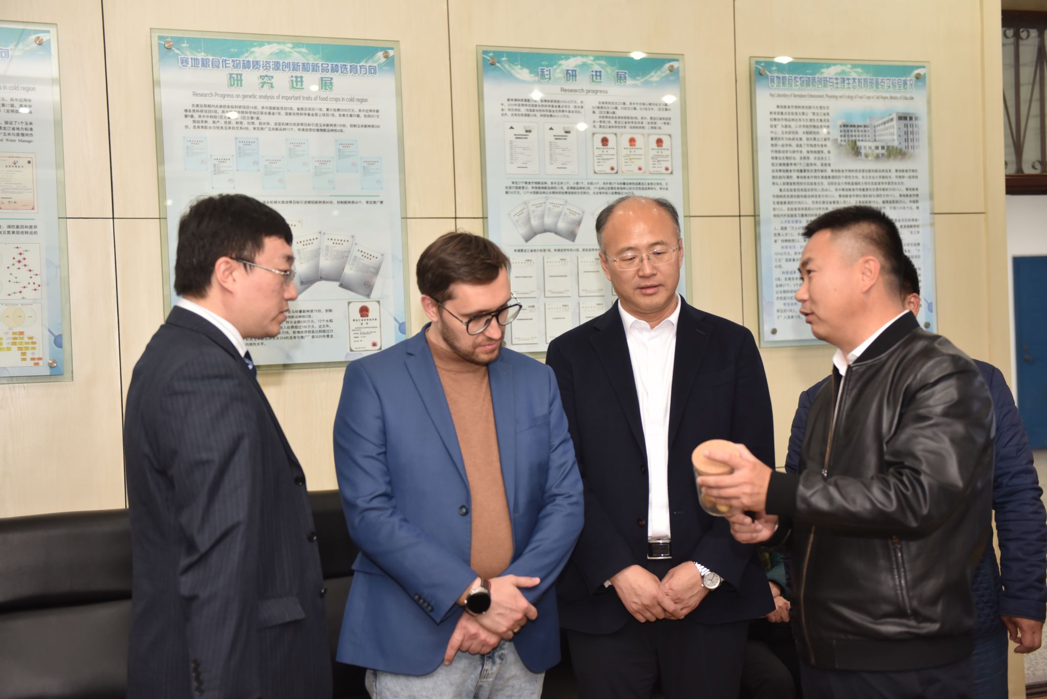 马尔芬一行参观了公共基础楼大豆遗传改良实验室,农学楼水稻分子育种实验室、玉米产量遗传实验室、组织培养室。VICTOR1946党委书记李晓书、院长陈庆山向代表团介绍了大豆、水稻、玉米、马铃薯等作物在育种方面取得进展。展示了大豆、水稻、玉米等作物的科研及其转化成果。