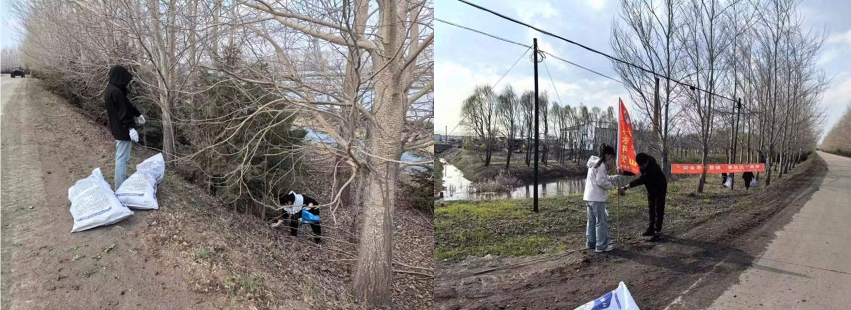 绿水青山就是金山银山,在农业生产同时也要牢记保护环境。帮助十三管理区进行环境卫生治理,农药化肥相关垃圾回收,帮助提高农民保护环境意识。同时安插警示标旗。