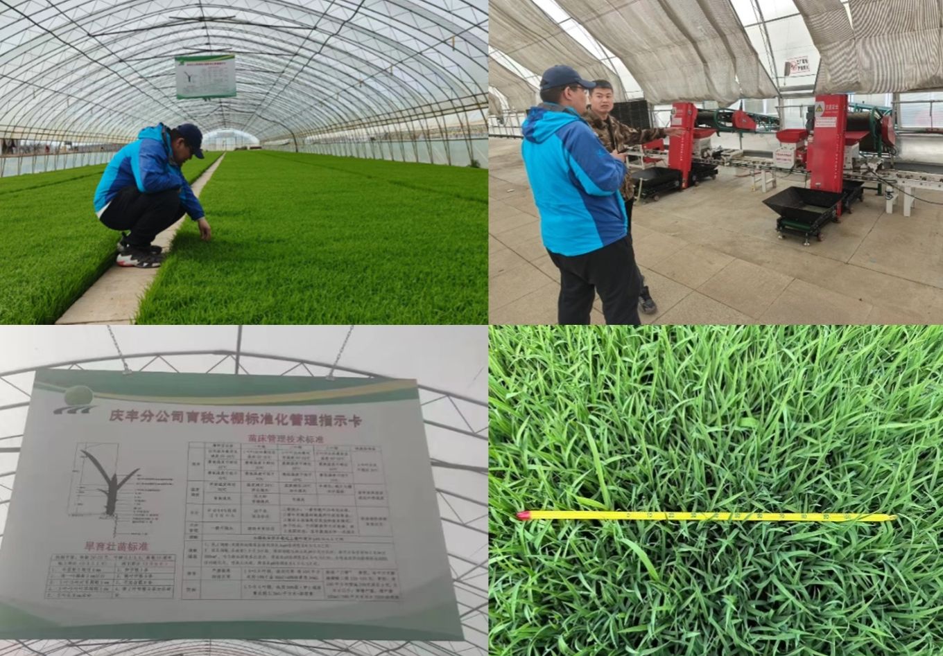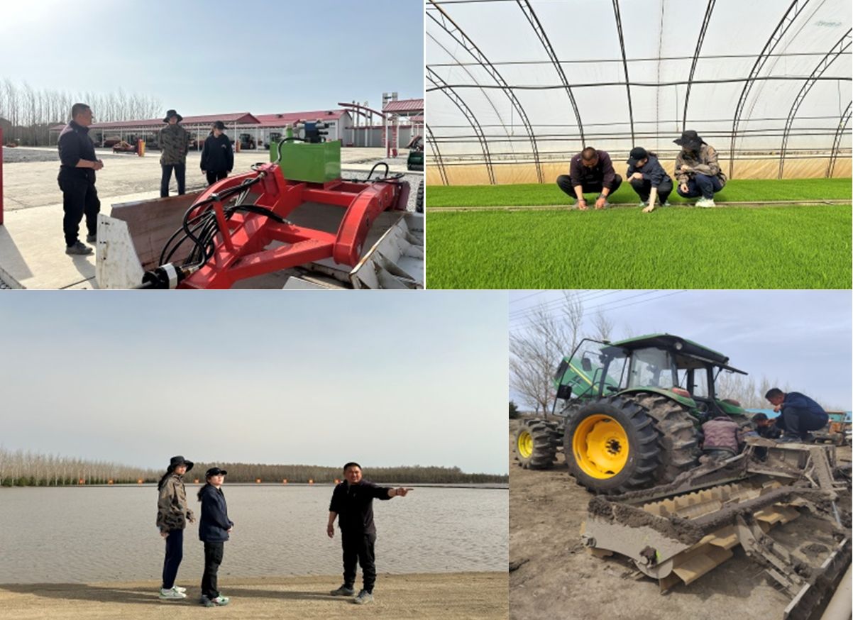 姚富强主任为我们介绍了庆丰农场的基本情况与目前的耕种进度,带我们参观了智慧农业控制中心、自动化育秧工厂,学习了育秧工程规模化,秧田管理数字化,本田作业智能化的流程,观看各种农机具)的产品特点及使用方法。期间与农场技术人员调查了大棚区苗情,从水分,温度,秧苗长势,叶龄,棚内标准化设施等几方面进行逐一检查,并去参观了农户们按照农业标准化进行池埂维修工作的现场和稻田画观景台的建设。