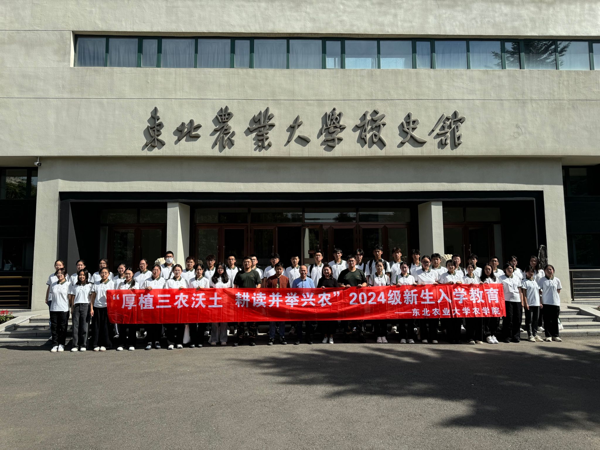 校史馆内的每一张照片、每一件展品都诉说着学校的过往岁月,记录着一代又一代师生的奋斗足迹。王成贵先生作为校史的亲历者和见证者,生动地为新生们讲述学校的发展史,帮助新生们深入了解了学校的悠久历史和文化底蕴。回望东农七十六载筚路蓝缕,2024级新生们深刻体会到何为“艰苦奋斗,自强不息”的东农精神,何为“博学笃行,明德亲民”的东农校训。