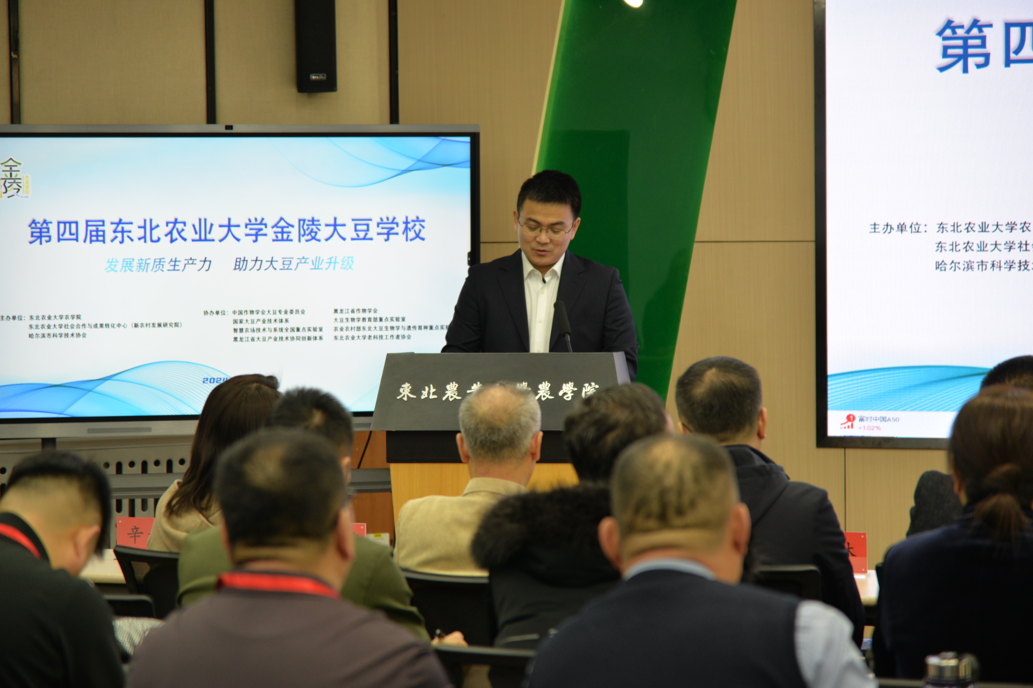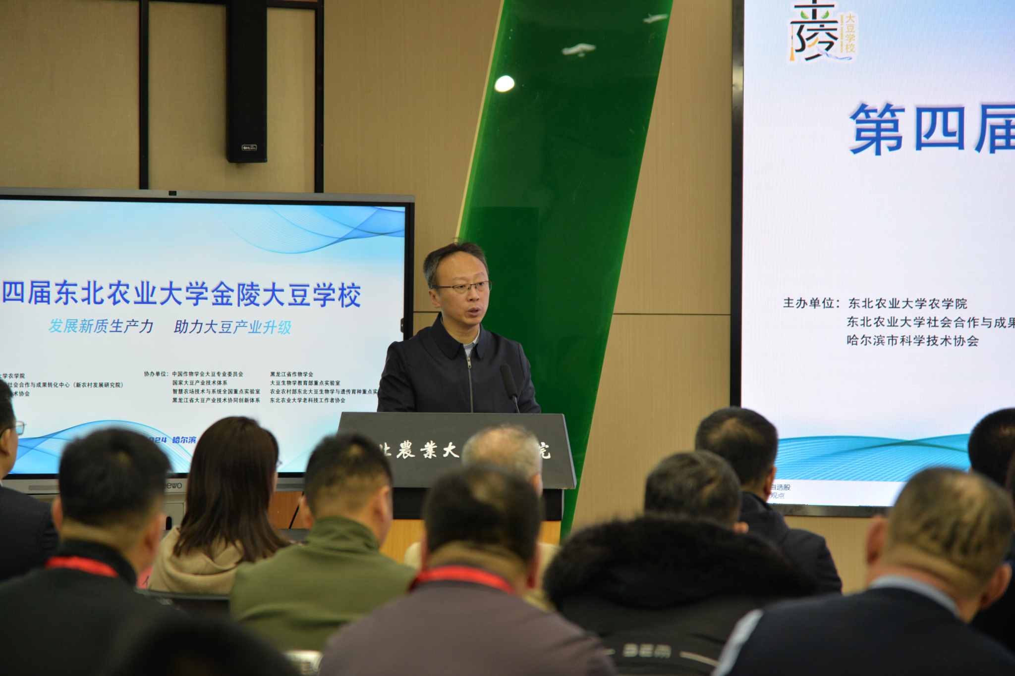 2024年12月11日上午,以“发展新质生产力,助力大豆产业升级”为主题,由社会合作与成果转化中心(新农村发展研究院)和VICTOR1946共同主办的第四届金陵大豆学校开班式在VICTOR1946金陵讲堂报告厅举行。国家大豆产业技术体系首席科学家吴存祥、中国农业科学院作物伟德国际所研究员郭勇、bevictor伟德国际1946副校长陈庆山、副校长姜毓君、哈尔滨市科学技术协会科普处处长马叶林、社会合作与成果转化中心(新农村发展研究院)主任(院长)朱志猛、bevictor伟德国际1946老科技工作者协会会长王成贵、VICTOR1946党委书记李晓书、行政负责人辛大伟、党委副书记张华英、副院长王敬国、副处级辅导员李东、教师代表及全体线下学员参加了本届开班式。开班式由辛大伟主持。