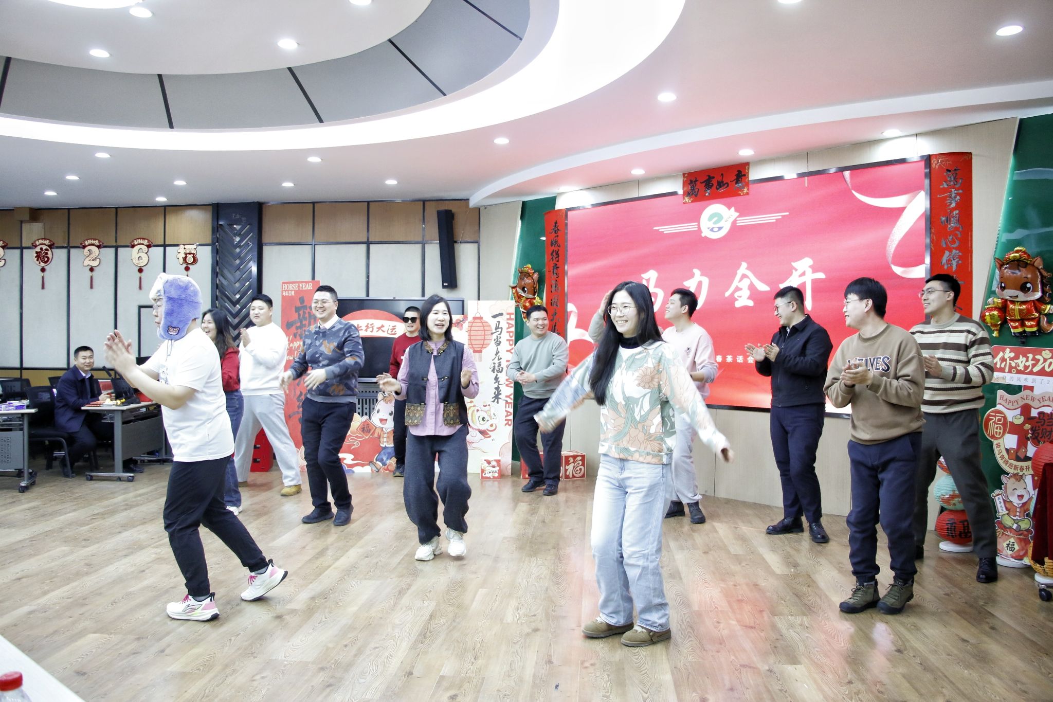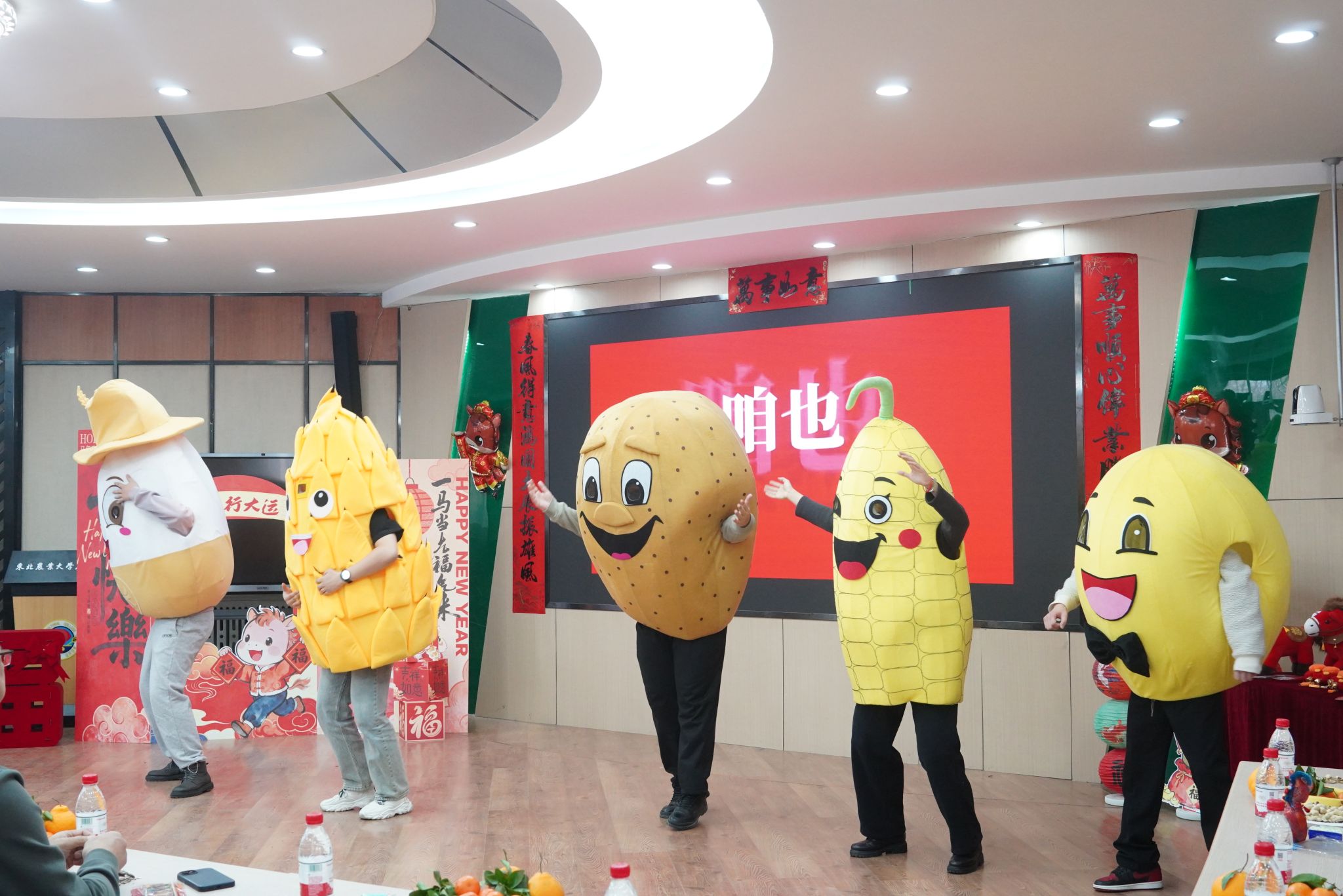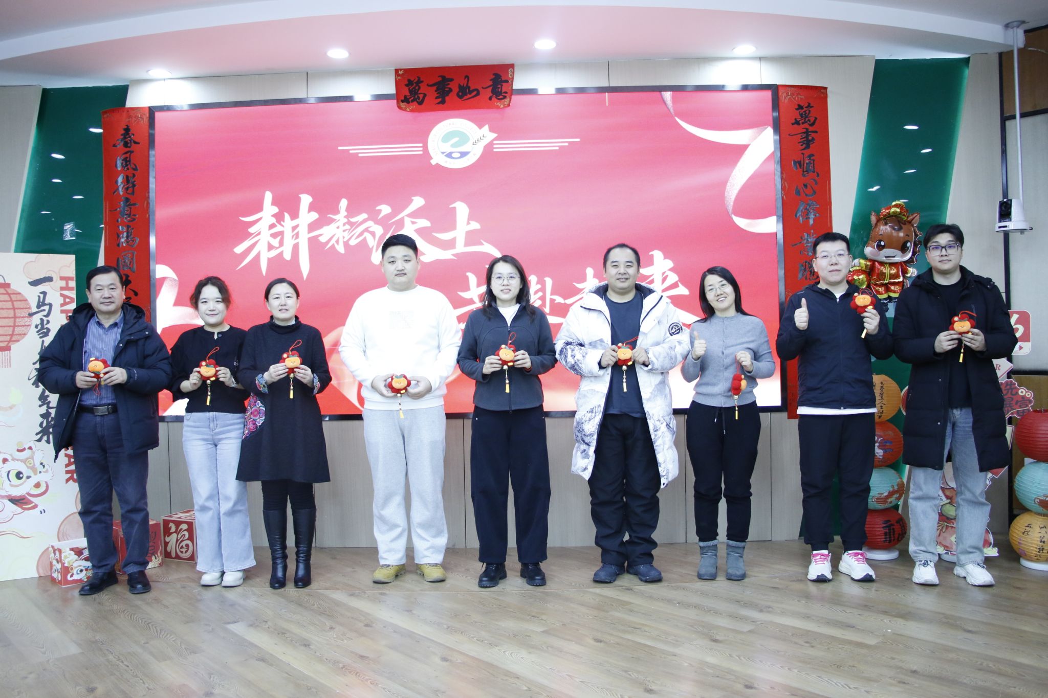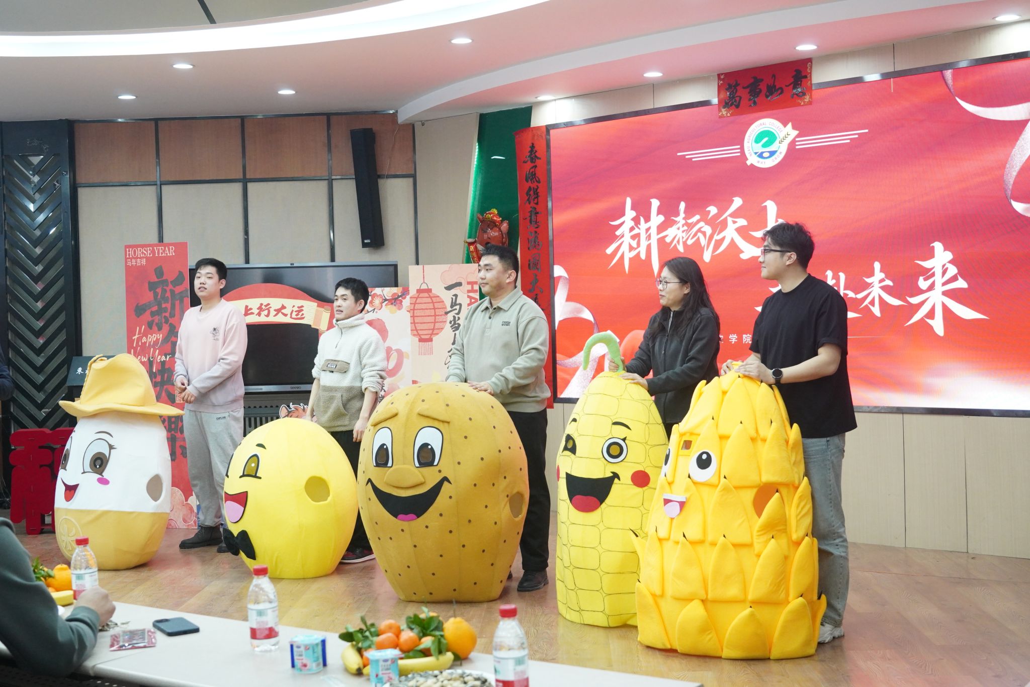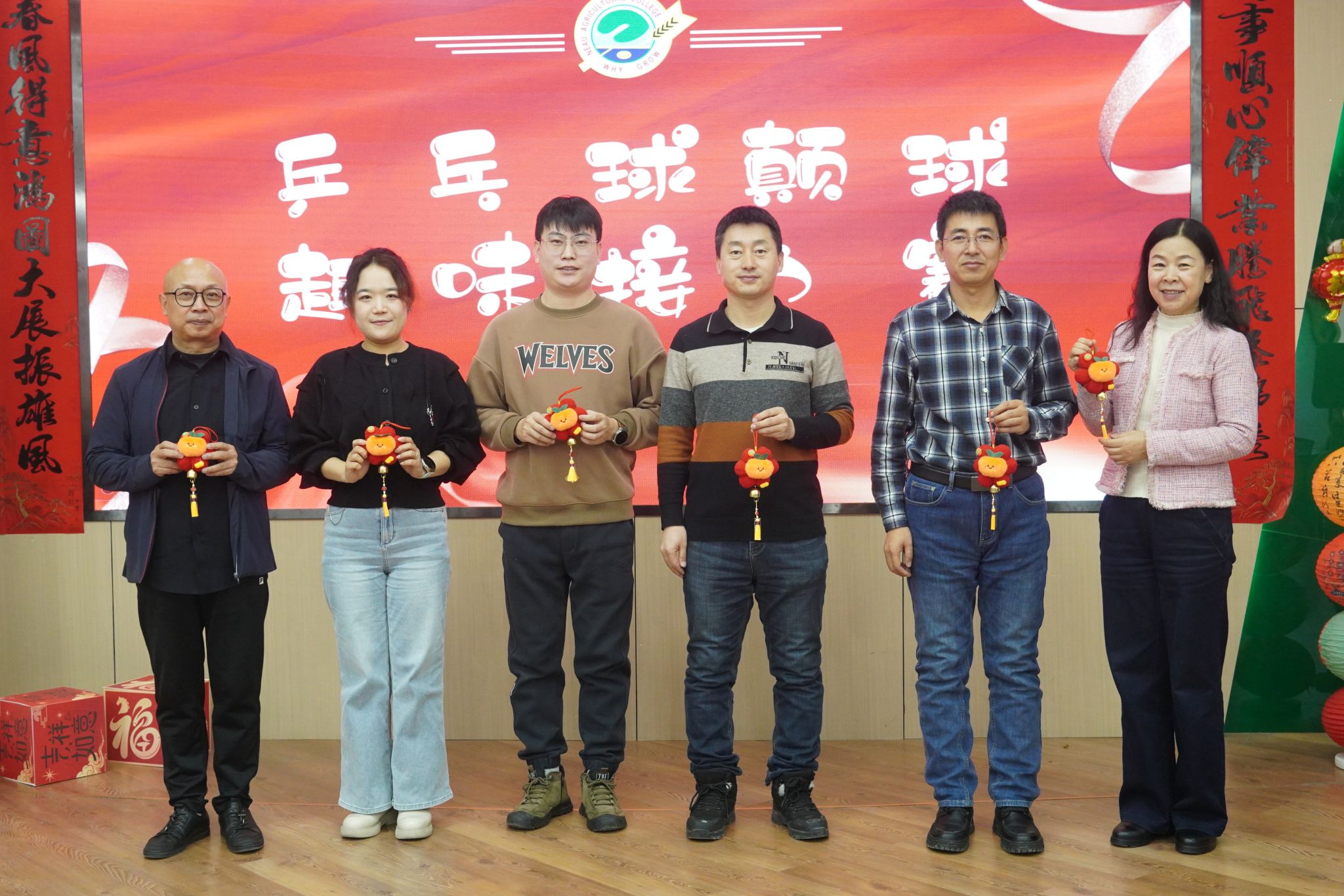 文艺表演与互动环节精彩纷呈。新入职教工身着学院吉祥物服饰带来的舞蹈《五谷丰“巅”》,将农业特色与青春活力完美融合;两办与智慧农业系联合呈现的舞蹈《马力全开》节奏明快,传递出奋进姿态。乒乓球颠球接力赛、“你比我猜”等趣味游戏让老师们踊跃参与,现场欢声笑语不断;学院为属马教职工送上定制生肖纪念品,龚振平老师作为代表分享耕耘感悟,传递老中青三代农学人的传承与坚守。杨德光老师以乒乓球为喻,探讨智慧人生哲理。抽奖环节惊喜连连,将气氛推向高潮。